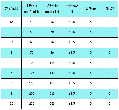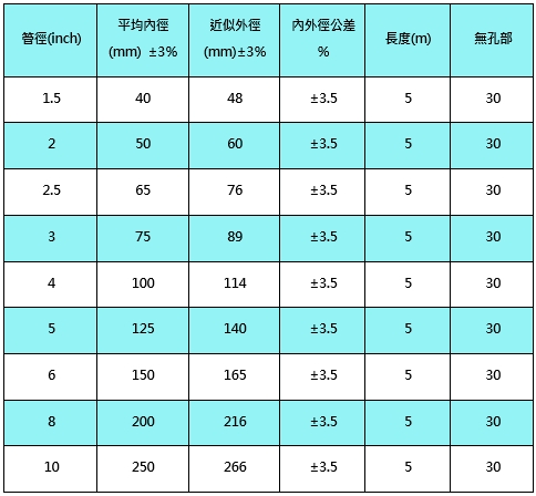 HDPE corrugated water permeable mesh pipe (1/3 impermeable type) specification table