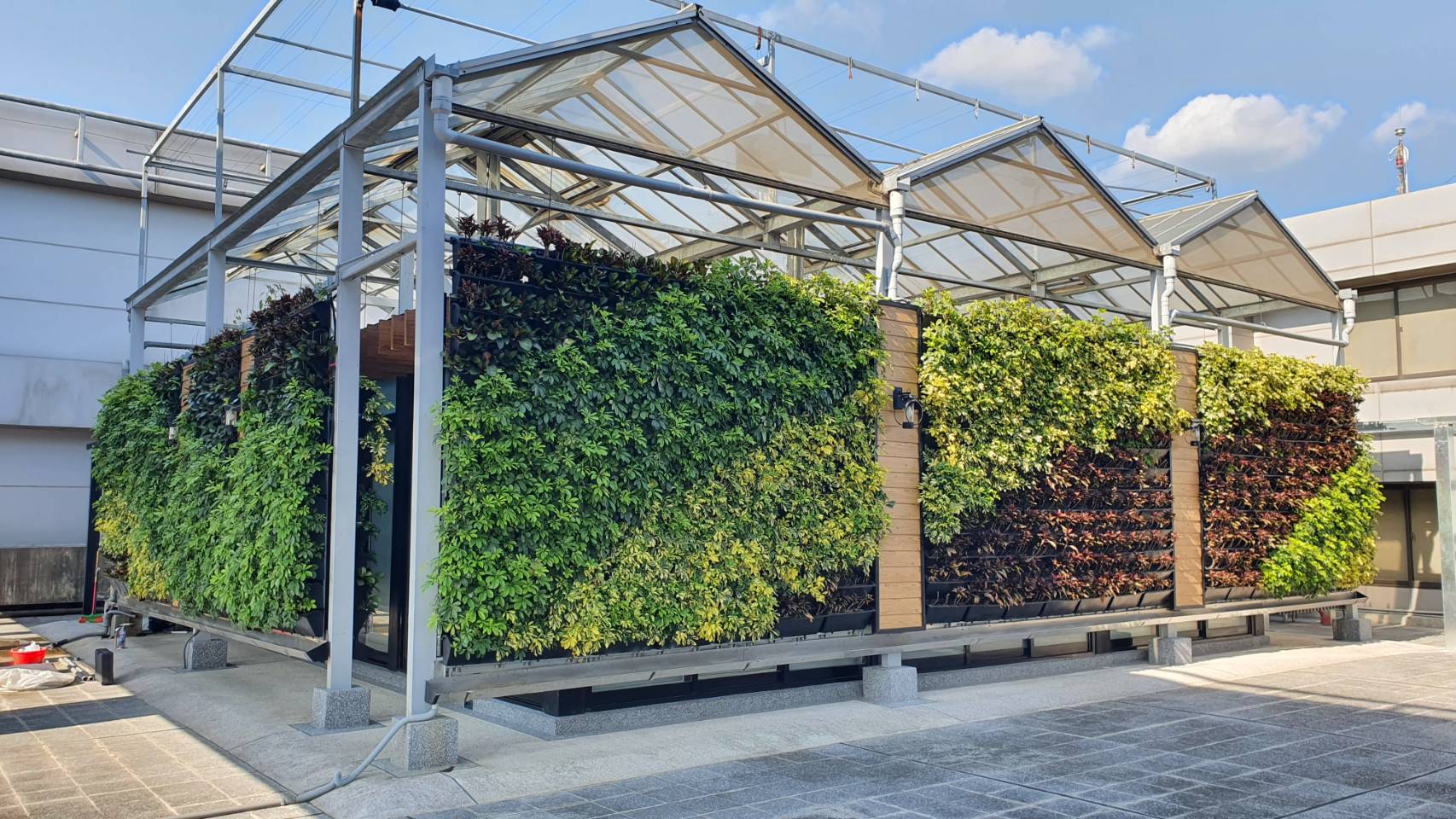 advantage : Installed on C-shaped steel, the structure is strong and stable, suitable for long-term and permanent green wall installation.The specially designed water storage system can prevent plants from drying up and dying in a short period of time when the soil is short of water, allowing plants to have better growing conditions.