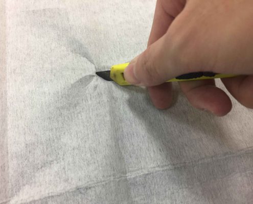 step3: Use a utility knife or sharp object to poke a small hole in the non-woven fabric